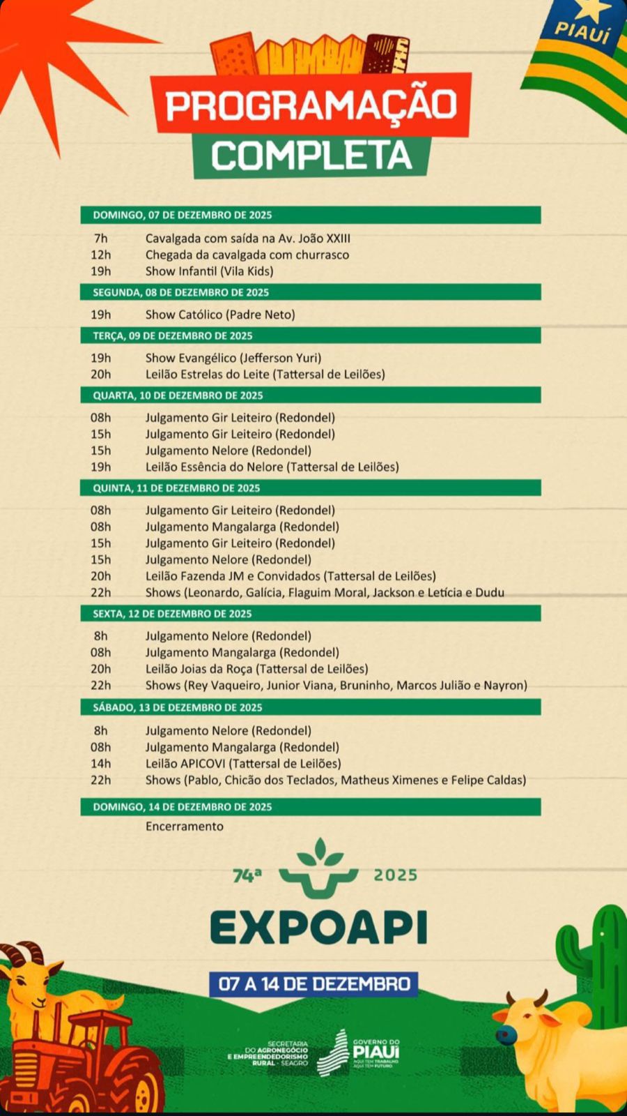 A Expoapi 2025 promete ser uma edição histórica, unindo tradição, inovação e diversão em um dos eventos mais esperados do calendário piauiense.