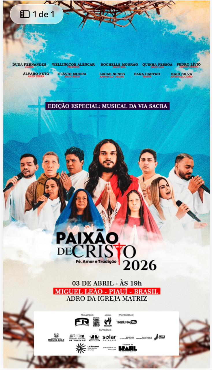 O município de Miguel Leão, no interior do Piauí, recebe no próximo dia 3 de abril mais uma edição do espetáculo “Paixão de Cristo”, que chega ao seu 11º ano como uma das principais manifestações culturais e religiosas da região.