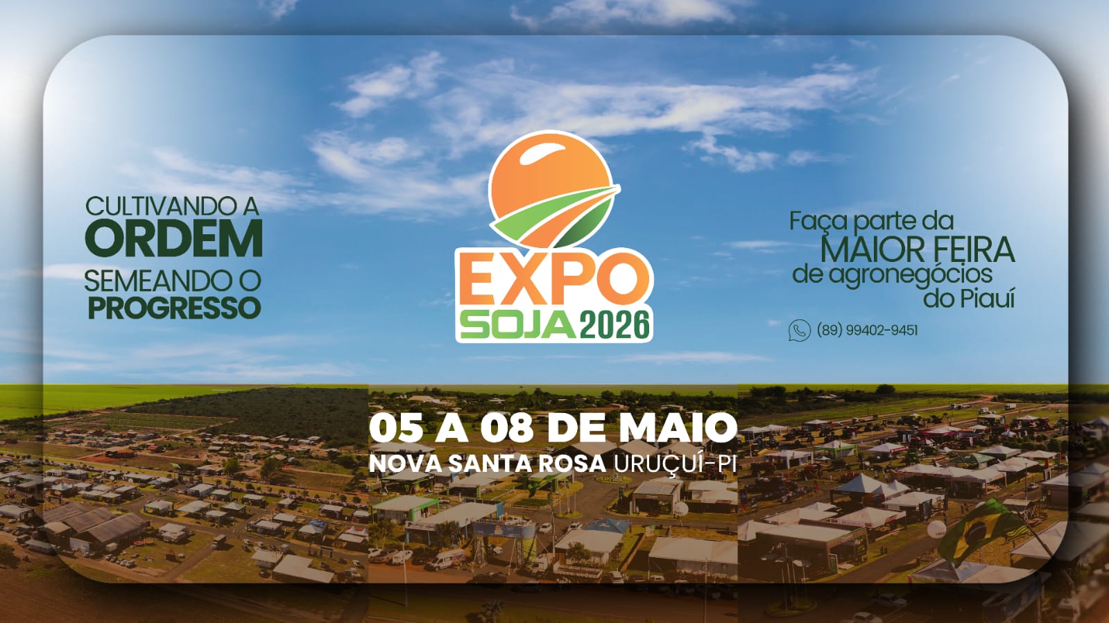 Reconhecida como a maior feira de agronegócios do Piauí, a Exposoja reunirá produtores, empresas e especialistas do setor entre os dias 5 e 8 de maio de 2026, em um dos eventos mais esperados do calendário agro do estado.