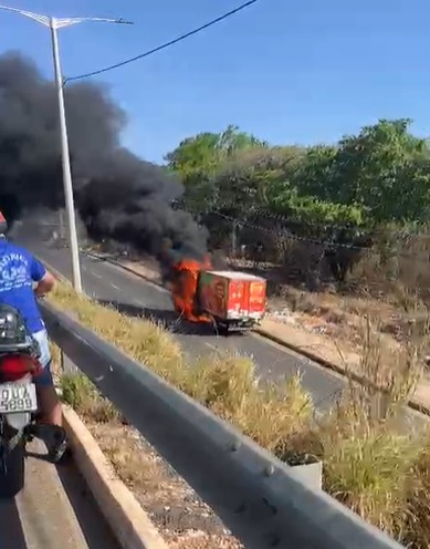 Um caminhão de pequeno porte, de entregas, foi tomado por um incêndio de grandes proporções na manhã desta terça-feira (25), em um trecho movimentado da BR-316, na Zona Sul de Teresina.