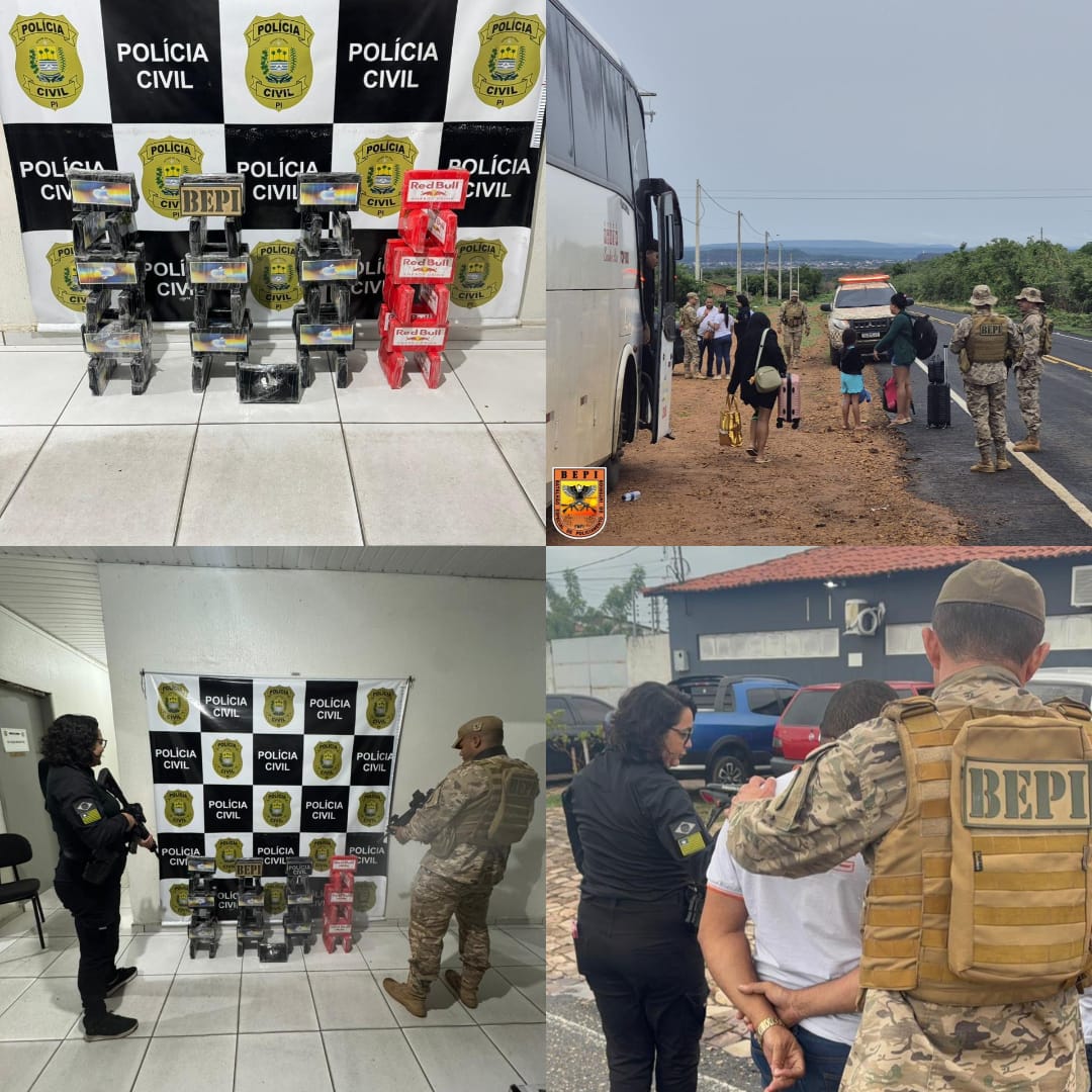 Foto: SSP-PIDe acordo com as autoridades, a apreensão ocorreu após troca de informações entre os órgãos de segurança, que identificaram um ônibus interestadual oriundo do estado de São Paulo com destino final à cidade de Picos. O veículo foi interceptado na rodovia PI-143, a cerca de 10 quilômetros de Oeiras.