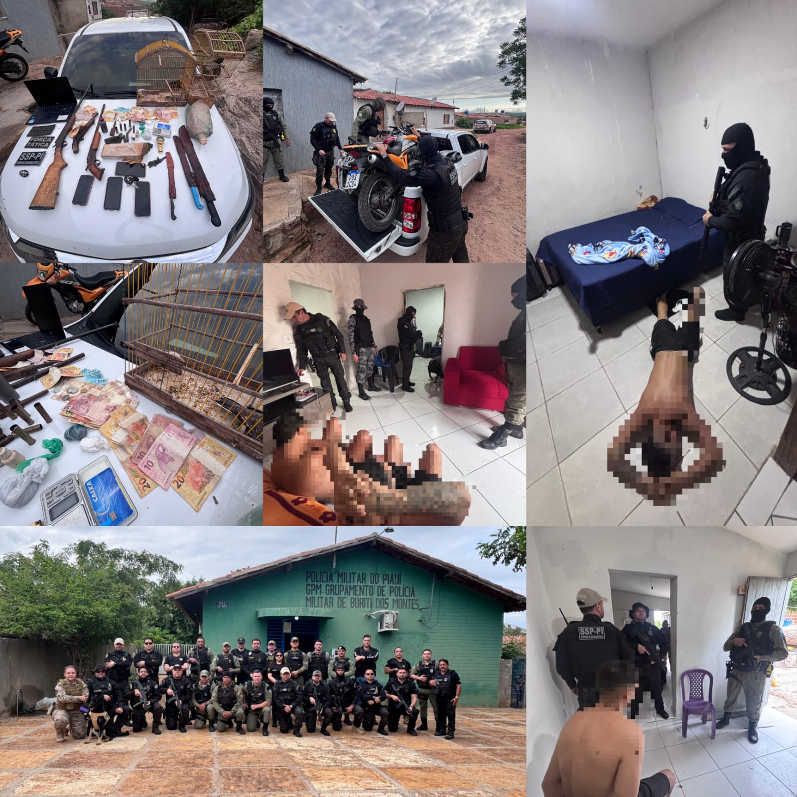 Foto: SSP-PIDurante a operação, quatro pessoas foram presas e sete armas de fogo foram apreendidas, além de munições, entorpecentes, balanças de precisão, três pés de maconha, dinheiro em espécie, três motocicletas sendo uma com sinais de adulteração e um carro.