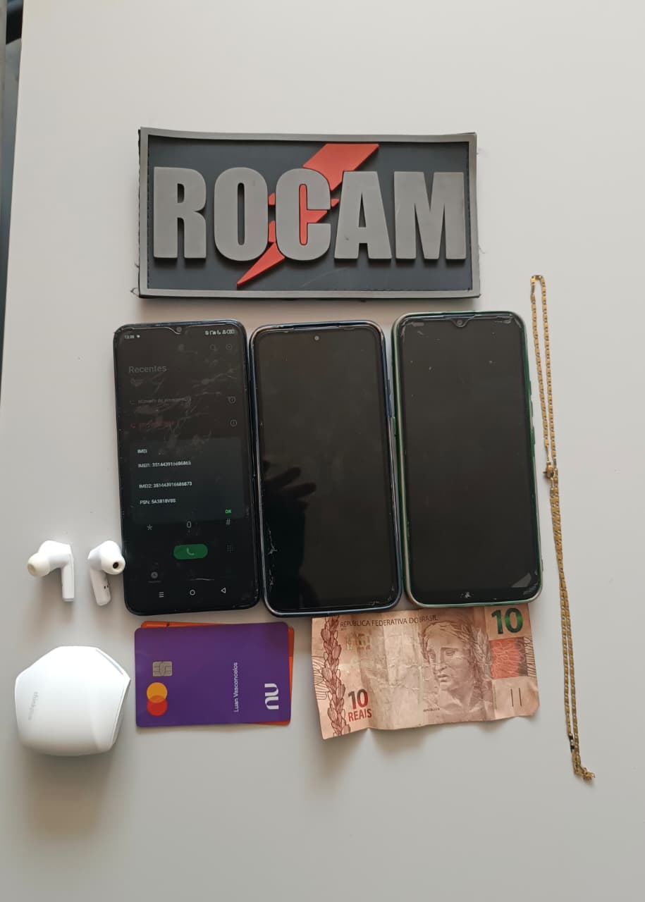 Foto: DivulgaçãoAo perceberem a aproximação da polícia, os homens tentaram fugir na contramão da avenida, mas foram rapidamente alcançados e abordados. Durante a revista, foram apreendidos um celular com restrição de uso e um fone de ouvido, cuja origem os detidos não souberam justificar.