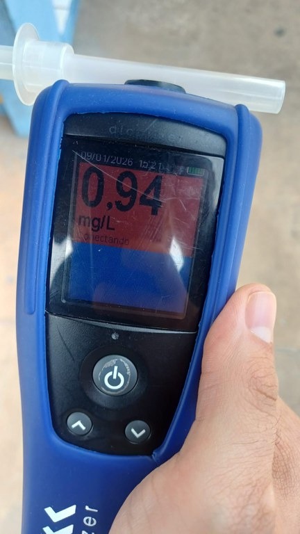 Ao abordar um veículo de carga, os policiais perceberam que o condutor apresentava forte odor de álcool. Ele se submeteu voluntariamente ao teste de alcoolemia, que apontou teor alcoólico acima do limite legal, confirmando a alteração da capacidade psicomotora.