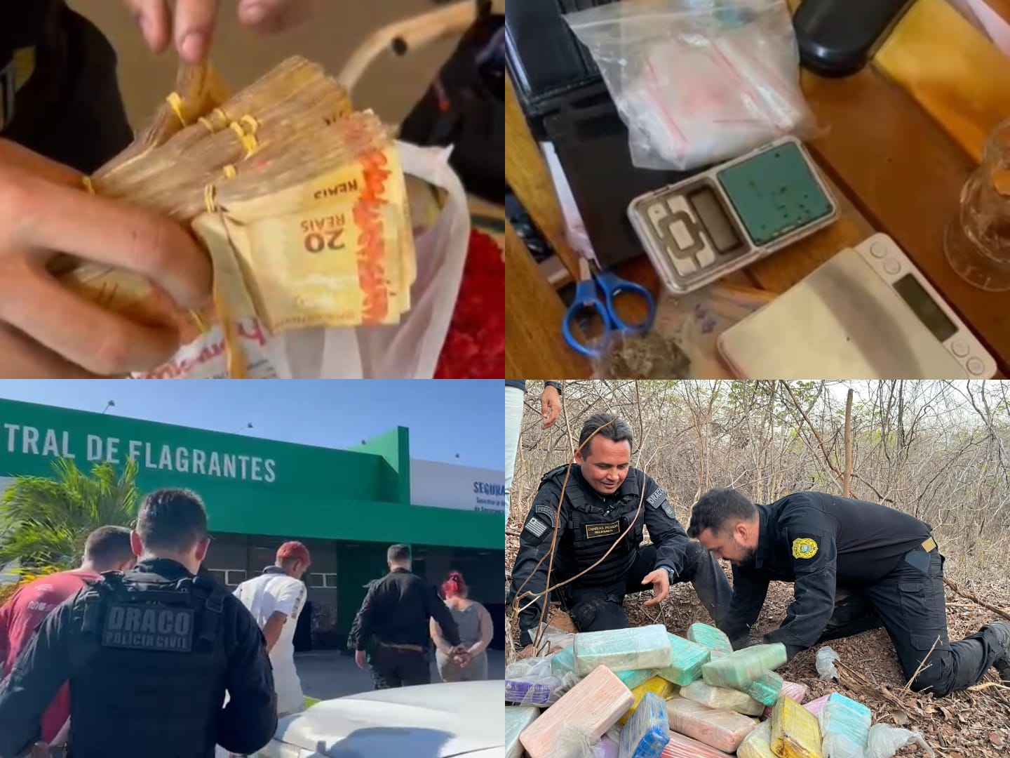 Foto: SSP-PIDurante o cumprimento de mandados de busca e apreensão nos bairros São Vicente, Bebedouro e Dom Rufino, em Parnaíba, as equipes localizaram o primeiro ponto de distribuição. No imóvel, quatro pessoas foram presas, e a polícia apreendeu dinheiro, grande quantidade de drogas e equipamentos usados para pesar e fracionar o material ilícito. Segundo a investigação, esse local abastecia a cidade e parte do litoral, funcionando como o centro de distribuição final da organização criminosa na zona urbana.