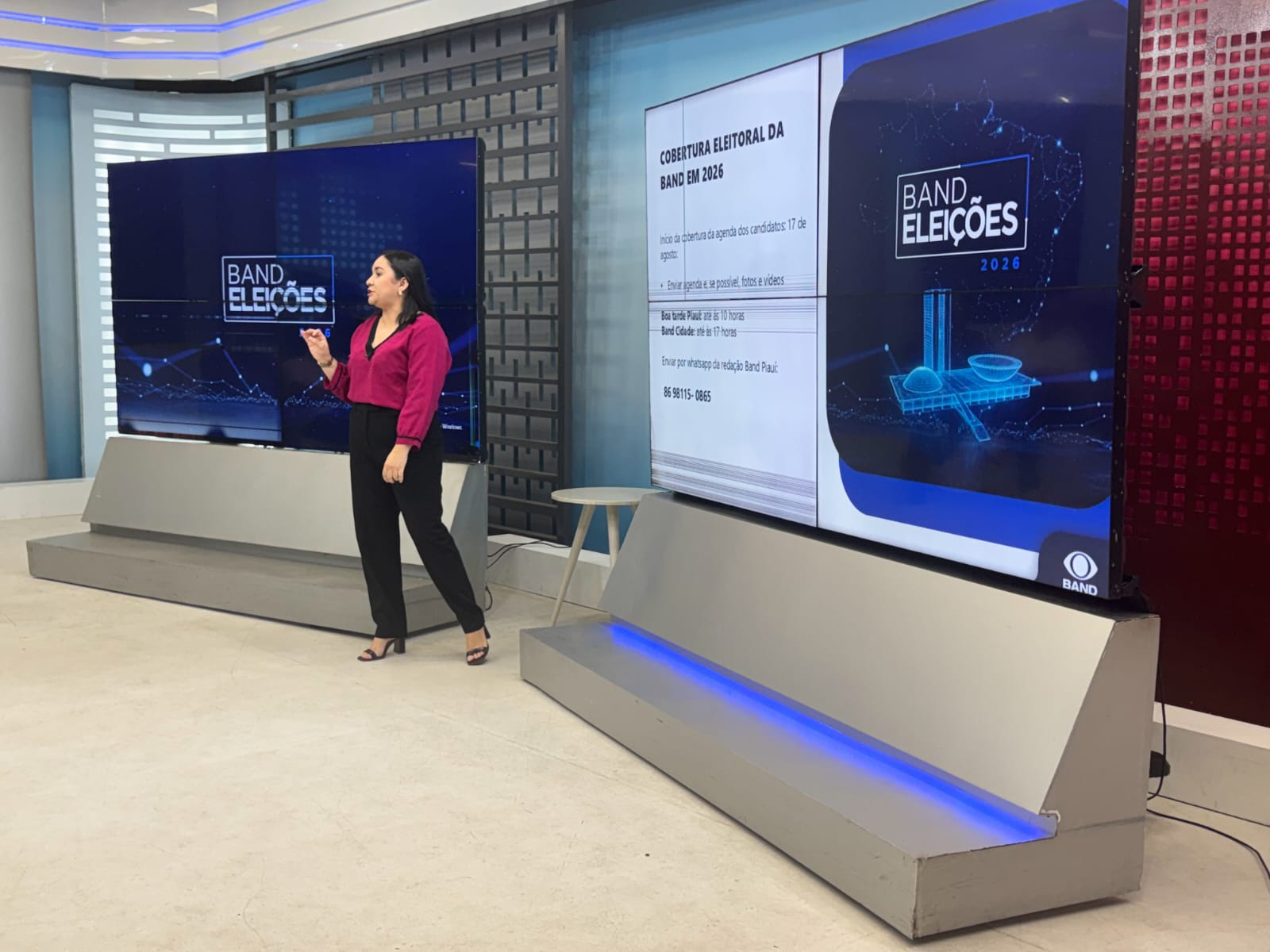 Na manhã desta segunda-feira (13), a TV Band Piauí realizou a primeira reunião com representantes partidários para a apresentação do plano de cobertura das eleições de 2026. Reafirmando o compromisso da emissora com a imparcialidade e o equilíbrio, o projeto garante espaço a diferentes vozes durante todo o percurso percorrido no processo eleitoral. Destaca-se também o cronograma de entrevistas ao vivo, que começará ainda no período de pré-campanha e se estenderá até o mês de setembro, com transmissão pelo "Boa Tarde Piauí", programa comandado por Junior Santos.